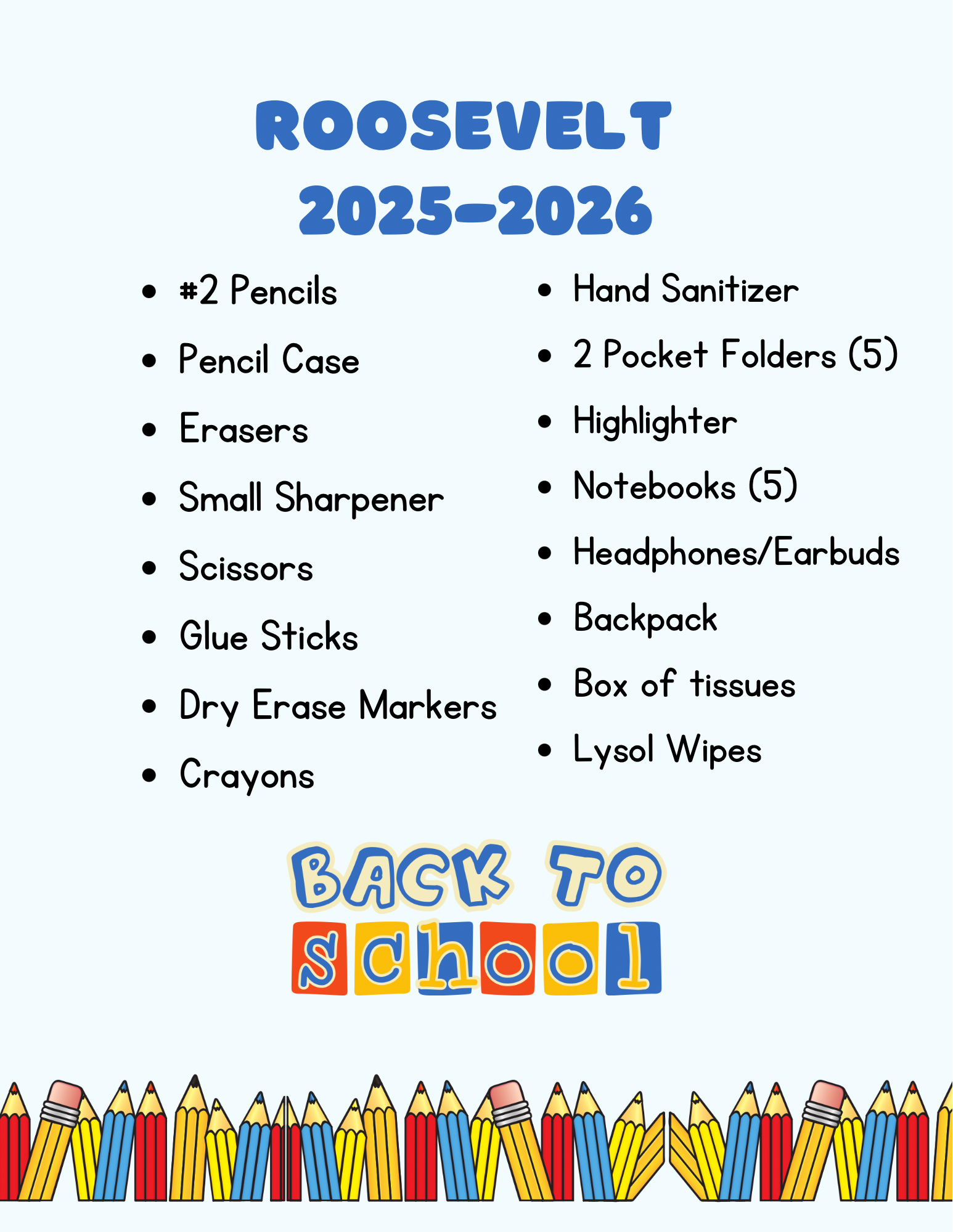 Roosevelt’s start time is still 7:30am and our end time is 2:09pm for the 2025-2026 school year. While this is the same schedule as last year, I am sharing this reminder so that if you have not done so already, you can start to make arrangements ahead of time to ensure your child can attend school on time every day. Students reporting to school on time, in uniform, will earn points on ClassDOJO. As a school community, we will continue to utilize ClassDOJO as a means of maintaining daily communication, providing school-wide updates and sharing photos of the great things happening here at Roosevelt. Please continue to support us in our efforts to create an environment built on our five core PBIS expectations.