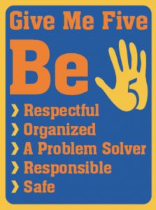 Roosevelt has five school-wide behavioral expectations that are referred to as the “Give Me Five.”  As an ode to Roosevelt’s bear mascot, these five behavioral expectations create the acronym ROARS, which stands for the following: